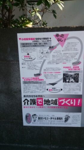 まちの中で、こんなポスターを貼って歩き始めました! 見かけましたら声をかけて下さいね♪ 今日は早速、道の至るところでじいさん、ばあさんと話に花が咲きました〜まさに徘徊楽し。